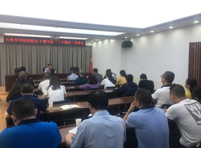 6月15日,市供销社科级及以上干部参加天水市司法防止干预司法“三个规定”宣讲会。