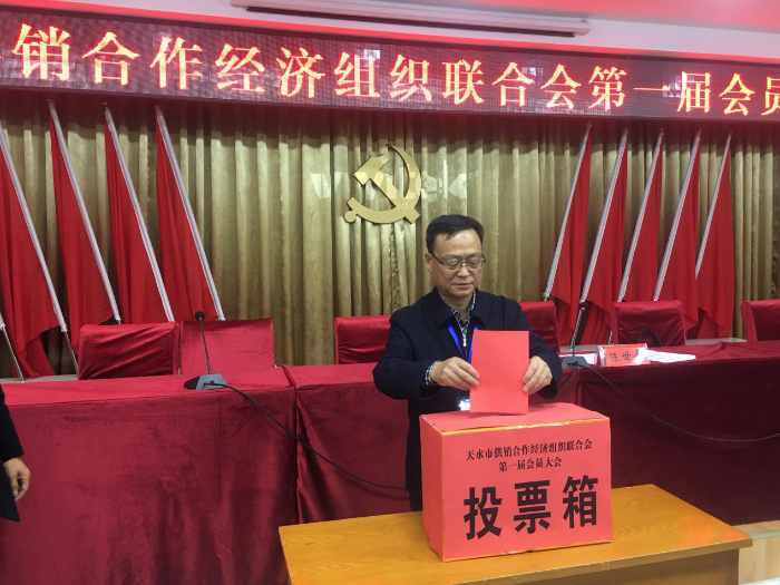 2019年11月12日下午,天水市供销合作经济组织联合会第一届会员大会在市委党校学术报告厅举行。会议选举产生了联合会第一届理事会和监事会成员,市供销社党组书记、主任陈世平同志当选为联合会第一届理事会会长。