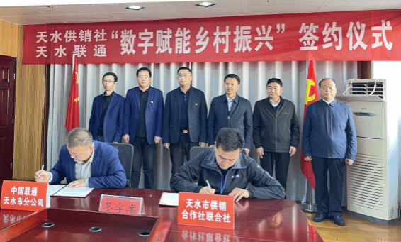 11月30日,天水市供销合作社联合社与中国联通天水市分公司签订“数字赋能乡村振兴”战略合作协议。市供销联社领导班子、各科室及社有企业负责人,中国联通天水市分公司领导班子、政企客户部相关负责人参加签约仪式。