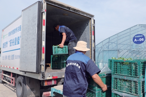 江苏苏州常熟常客隆公司在蔬菜种植基地直采分拣、进行冷链配送。 仇洁 摄
