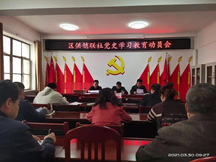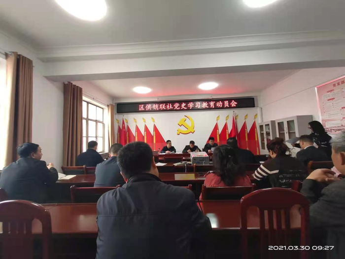 3月30 日,麦积区供销联社召开党史学习教育动员大会。会议学习了习近平总书记在全国党史学习教育动员大会上的讲话精神,传达了省、市、区党史学习教育动员会议精神,宣读了中共天水市麦积区供销联社党组关于开展党史学习教育的实施方案,并对开展党史学习教育工作进行了安排部署。