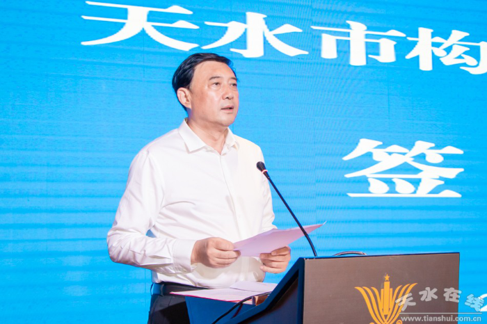 天水市委副书记、市长王国先, 市政协主席、市委农村工作领导小组常务副组长赵卫东,省供销合作社二级巡视员杨之春,市委常委、政法委书记刘天波,国药医养健康科技集团有限公司康华医疗产业集团党委书记、董事长马亚军,中建桥梁集团沿海公司党委书记、董事长郝小鹏见证了签约。 副市长逯克宗主持签约仪式。