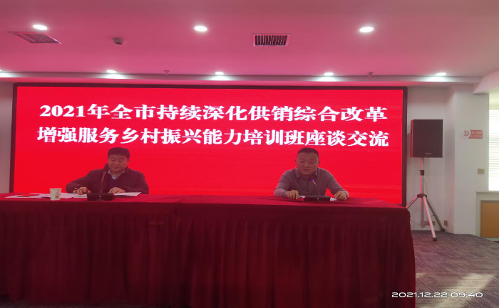 培训会以习近平新时代中国特色社会主义思想为指导,进一步学习了党的十九届六中全会精神、近年来习近平总书记对供销合作社工作的重要指示批示精神、习近平关于供销社全面深化改革、乡村振兴的重要论述精神。会上市社各领导详细讲解了供销综合改革政策、经验及服务乡村振兴举措的具体做法、探索“三位一体”示范点进展工作的见解。