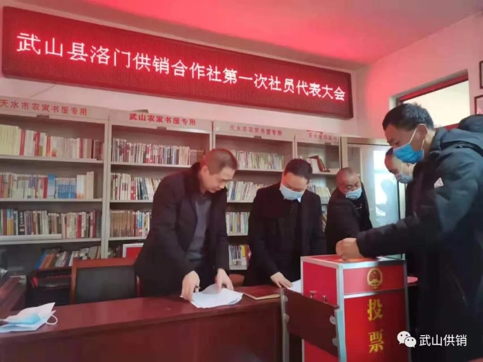 会上,镇人民政府副镇长王进明同志致辞,并指出,供销合作社是中国特色农业经济体系的重要组成部分,是推动农村经济社会发展不可替代、不可或缺的重要力量。各级供销合作社和广大供销合作社系统干部职工秉承“为农服务、面向市场、开放办社、多元发展”的方针,凝心聚力,锐意改革,为促进农业发展、农民增收、农村繁荣做出了突出贡献。新成立的“三会”,是洛门镇供销事业发展的新开端,要把握机遇,勇担重任,主动融入洛门发展大局、精准服务洛门发展大局,不断把供销合作事业推向更高层次。会议审议通过了《武山县洛门供销合作社章程(草案)》和《武山县洛门供销合作社第一次社员代表大会选举办法(草案)》的决议,选举产生洛门供销合作社理事会主任、理事、监事会主任、监事。