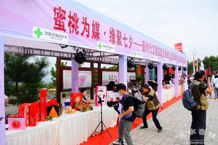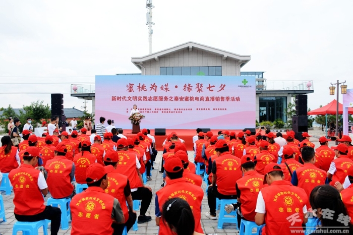 为深入学习贯彻习近平总书记关于实施乡村振兴战略的重要指示精神,充分发挥电商直播的桥梁纽带作用,进一步拓宽农副产品销售渠道,帮助广大果农稳定增收。疫情特殊时期,在省、市供销社的安排部署和精心指导下,秦安县供销联社2022年8月4日在刘坪镇周湾村参与举办“蜜桃为媒•缘聚七夕——新时代文明实践志愿服务之秦安蜜桃电商直播销售季活动”。