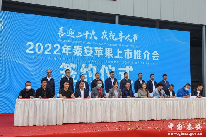 推介会上“秦安苹果”盛装出场,秦安果业局宣读了秦安苹果采摘标准,当地果品企业代表进行了发言,秦安县果品行业协会做产销对接服务发言,龙头企业和外地客商现场进行了签约,县四大家分管领导参加了活动。
