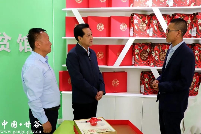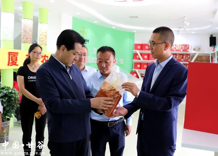当天,申君明一行来到甘谷县农产品832消费扶贫馆,详细了解了产品展示、供应商入驻、商品质量管控、仓储物流服务、带贫益贫效果等情况。