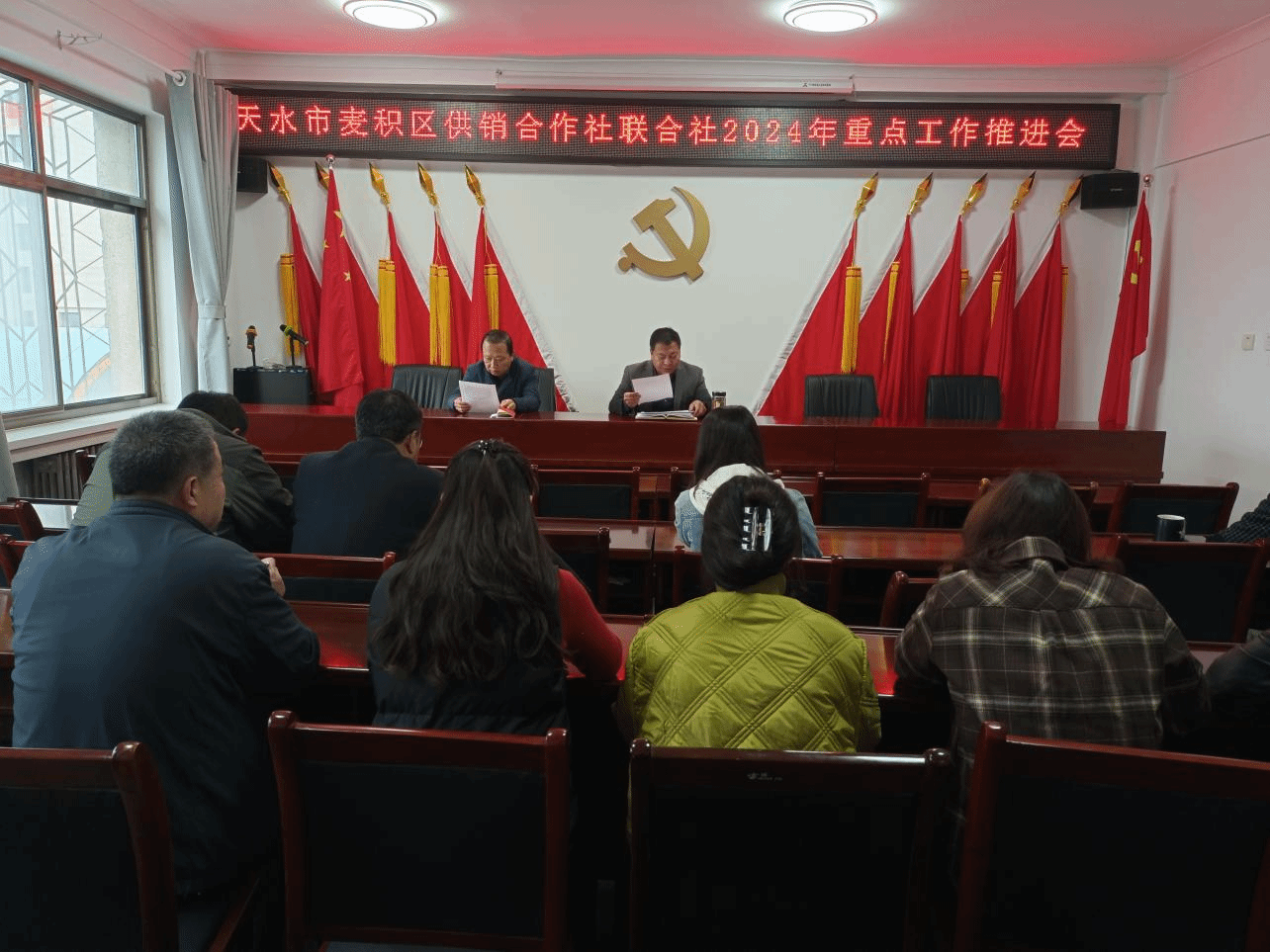 为深入贯彻落实区委、区政府及省市社部署要求,认真总结2024年各项工作进展情况,对标对表全年工作计划,加快推进全年目标任务的完成,11月11日,麦积区供销联社召开了重点工作推进会。会上学习传达了习近平总书记视察甘肃重要讲话和指示精神、天水市供销联社2024年前三季度经济运行和重点工作调度会议精神,通报了区供销联社前三季度主要经济指标和重点工作任务完成情况,认真总结剖析了区供销系统工作中存在的问题和不足,安排部署了下一阶段的重点工作任务。