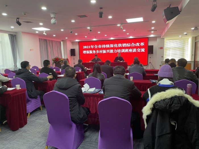 近日,天水市供销合作社结合全市持续深化供销综合改革增强服务乡村振兴能力培训,开展“三位一体”综合合作座谈交流。市供销社相关科室,各县区供销社主要领导,分管领导、业务骨干,试点单位负责人参加。