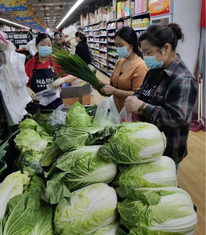 三是聚焦工作重点,积极落实居民生活消费品保供稳价任务。充分发挥系统组织、网络及经营服务优势,确保生活消费品供应。以农产品为重点,依托全系统企业、生产基地、冷链物流企业和连锁经营网点,统筹做好蔬菜,粮食以及其他重要生活消费品的统一储存调运和供应。组织系统内经营主体全力保障服务范围内的群众生活必需品供应。市社社有企业农锦电商公司旗下供配超市通过微信群开展线上下单、线下配送到户服务,保障了周边十余个小区群众疫情防控期间的生活必需品供应。疫情期间,日供应达到300吨,米面粮油肉蛋果蔬日用生活品等,应供尽供,直接服务的村社达到376个。