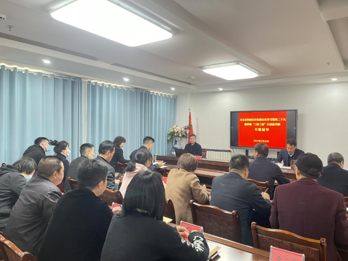 为全面学习贯彻党的二十大精神,推进“三抓三促”行动走深走实,促进市供销社系统党员干部在学习上下功夫、在执行上铆足劲、在效能上见真章。3月30日,市供销联社举办学习党的二十大精神暨“三抓三促”行动专题辅导报告会,邀请中共天水市委讲师团成员、中共天水市委直属机关工委副书记吴和平同志作专题辅导。市供销联社党组书记、理事会主任张恒刚同志主持会议。市社机关全体干部职工、社有企业负责人、秦州区供销联社部分干部职工聆听了专题报告。