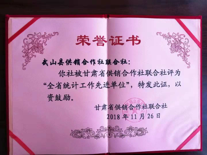 11月30日,在兰召开全省供销合作社统计工作会议,天水市供销合作社副主任张景荣带领综合业务科参加了会议并作统计联网直报工作交流发言,天水市供销合作社被评为2017年度全省供销合作社统计同工种竞赛特等奖,武山县供销合作社联合社被评为全省统计工作先进单位。