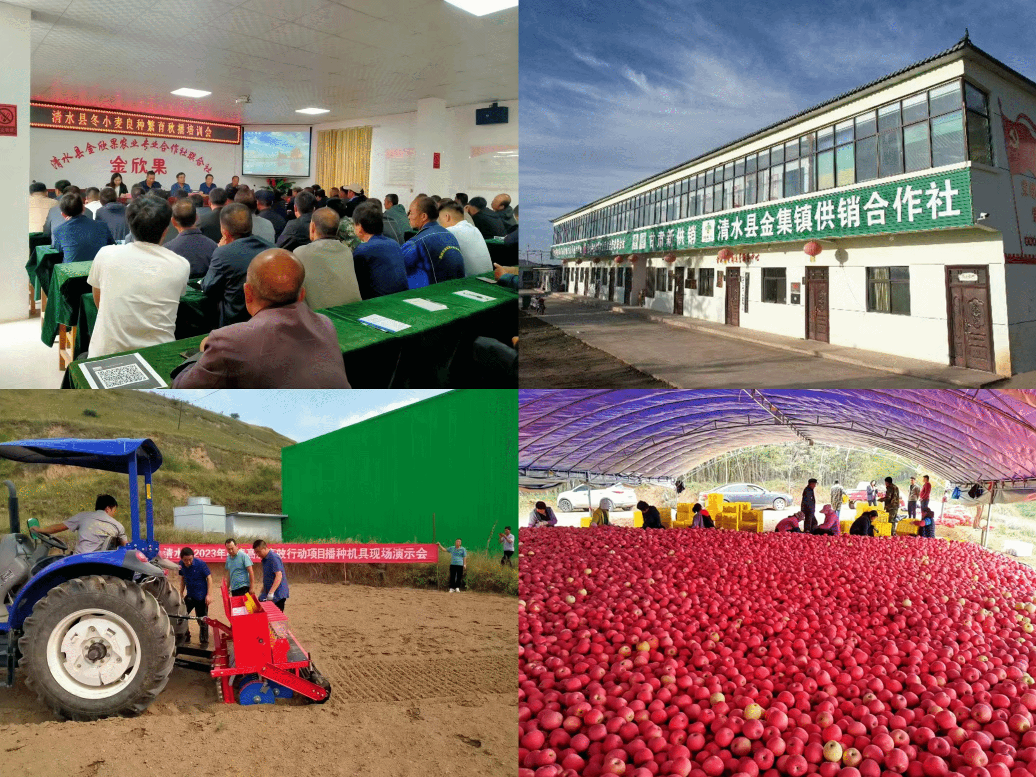 一是扎根乡村,不忘为农服务初心。金集镇供销合作社积极探索“合作社+基地+农户+市场”的模式,全力搭建“技术共享、信息互通、经营互助、市场共赢”的综合服务平台。深化供销为农服务,特别是立足当地苹果产业发展,大力开展农资供应、庄稼医院及测土配方施肥、统防统治、托管代种、技术培训、农机作业等农业社会化服务,由于服务范围广、项目全、能力强,群众对该社十分认可。今年以来,累计流转土地种植苹果500亩、代管果园12000亩,配备大型农机具20台,年均作业面积3000亩;建成培训室1座200平米,采取集中培训、现场教学、基地示范等方式,年均培训社员群众超过800人次,有效提高了果品产业作务水平。