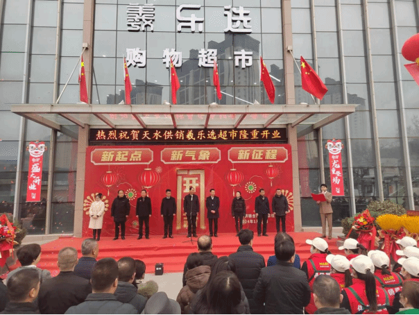 在开业仪式上,天水羲乐选超市有限公司负责人介绍了企业情况;市供销联社党组书记、理事会主任张恒刚作了致辞;市政府副市长康泰来,市应急管理局党委书记、局长葛彦迪共同为天水羲乐选超市有限公司揭牌;市政府副市长康泰来宣布天水农产品品牌运营中心成立暨天水羲乐选超市有限公司开业;市县区领导及各位嘉宾参观了供销超市、农产品品牌运营中心和电商孵化基地。