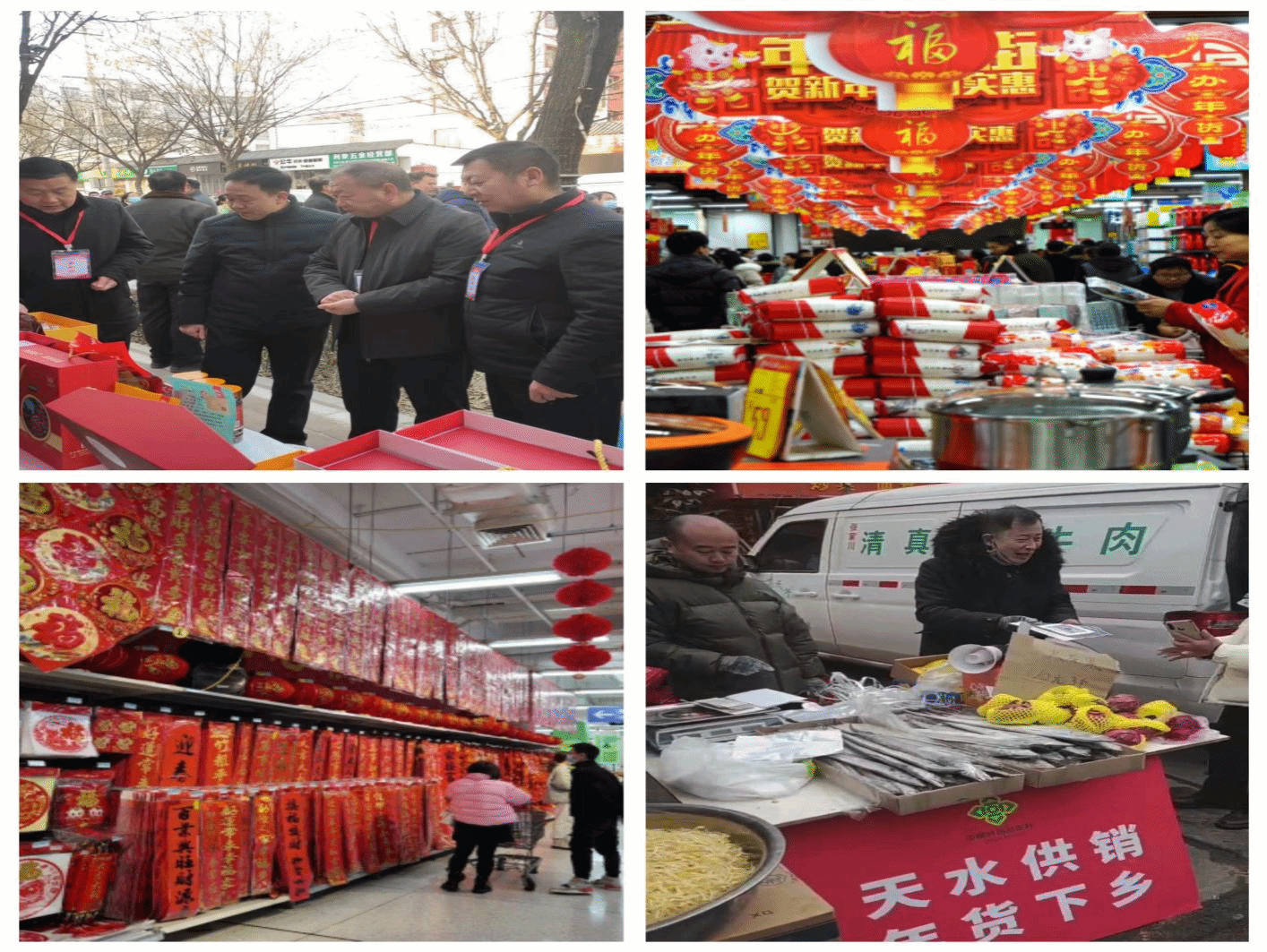秦州区供销联社顺应“节前潮流”,组织人员深入基层开展“年货促销迎新春”活动,集中推出日用百货、农特产品、春联、剪纸、家用小电器、海鲜肉类等近千种年货。麦积区供销联社与相关部门联合举办2024年优质农产品年货节,着力构建麦积区绿色优质农产品销售矩阵,打响“天水花牛苹果”“麦积花椒”“麦积核桃”“麦积山花蜜”等区域品牌,促进特色产品畅销带动农民增收。