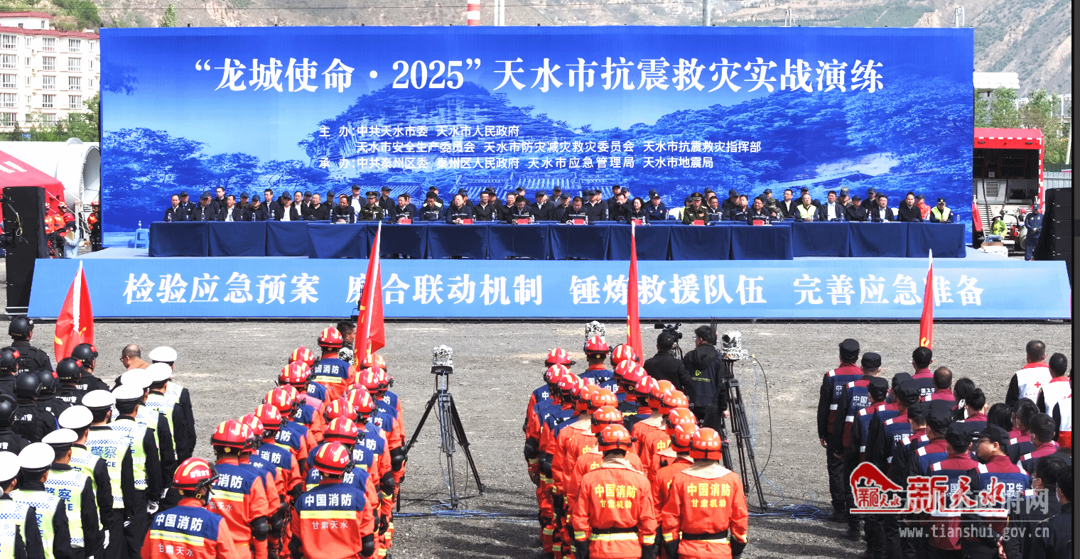 在第17个全国防灾减灾日来临之际,4月25日上午,“龙城使命・2025”天水市抗震救灾实战演练在秦州区藉口镇举行。市委书记冯文戈出席并讲话。
