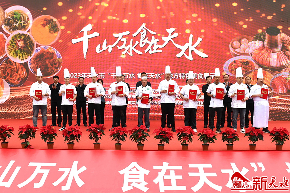 本次活动以“千山万水·食在天水”为主题,进一步打造“天水美食地图”,用天水美食讲天水故事,用天水文化丰富提升当地小吃以及地方菜品知名度,推动我市“名菜”“名吃”“餐饮名店”“老字号”联动,提升特色餐饮品牌,擦亮天水美食名片。活动中,为荣获“游客信得过单位”的凯悦大酒店、玫瑰大酒店等13家企业代表授牌,为荣获地方特色美食展示厨艺金奖的王峰、王强强等10位名厨颁奖。