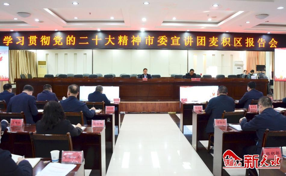 11月16日,学习贯彻党的二十大精神市委宣讲团宣讲报告会在麦积区举行,市委副书记、市长王国先作宣讲报告。他强调,要把学习宣传贯彻党的二十大精神作为当前和今后一个时期的首要政治任务,持之以恒在全面学习、准确把握、深入落实上下功夫,深刻领悟“两个确立”的决定性意义,切实增强“四个意识”、坚定“四个自信”、做到“两个维护”,坚定不移沿着习近平总书记指引的方向勇毅前行。