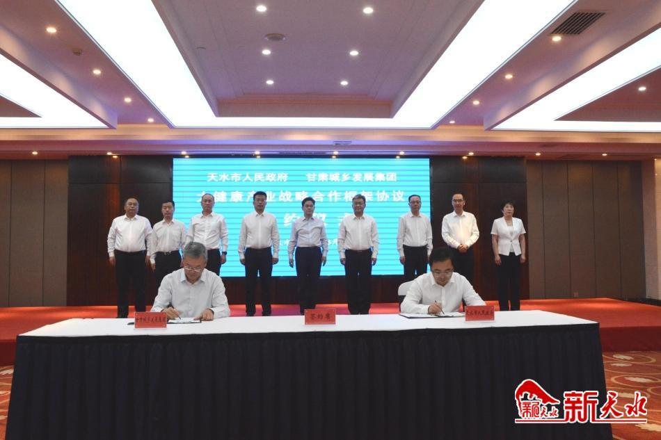 8月25日,天水市政府与甘肃省城乡发展投资集团有限公司签订大健康产业战略合作框架协议。市委副书记、市长王国先,省城乡发展投资集团有限公司党委书记、董事长王明寿,副总经理李大鹏出席签约仪式并见证签约。