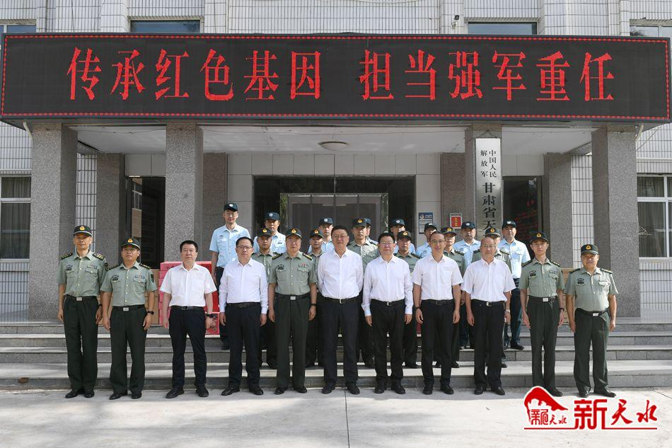 在“八一”建军节来临之际,7月28日,市委书记冯文戈、市人大常委会主任张建杰带领市四大组织有关领导走访慰问驻市部队和市消防救援支队,向广大驻市部队官兵和消防指战员致以节日的问候,并对他们长期以来为天水经济社会发展作出的贡献表示感谢。