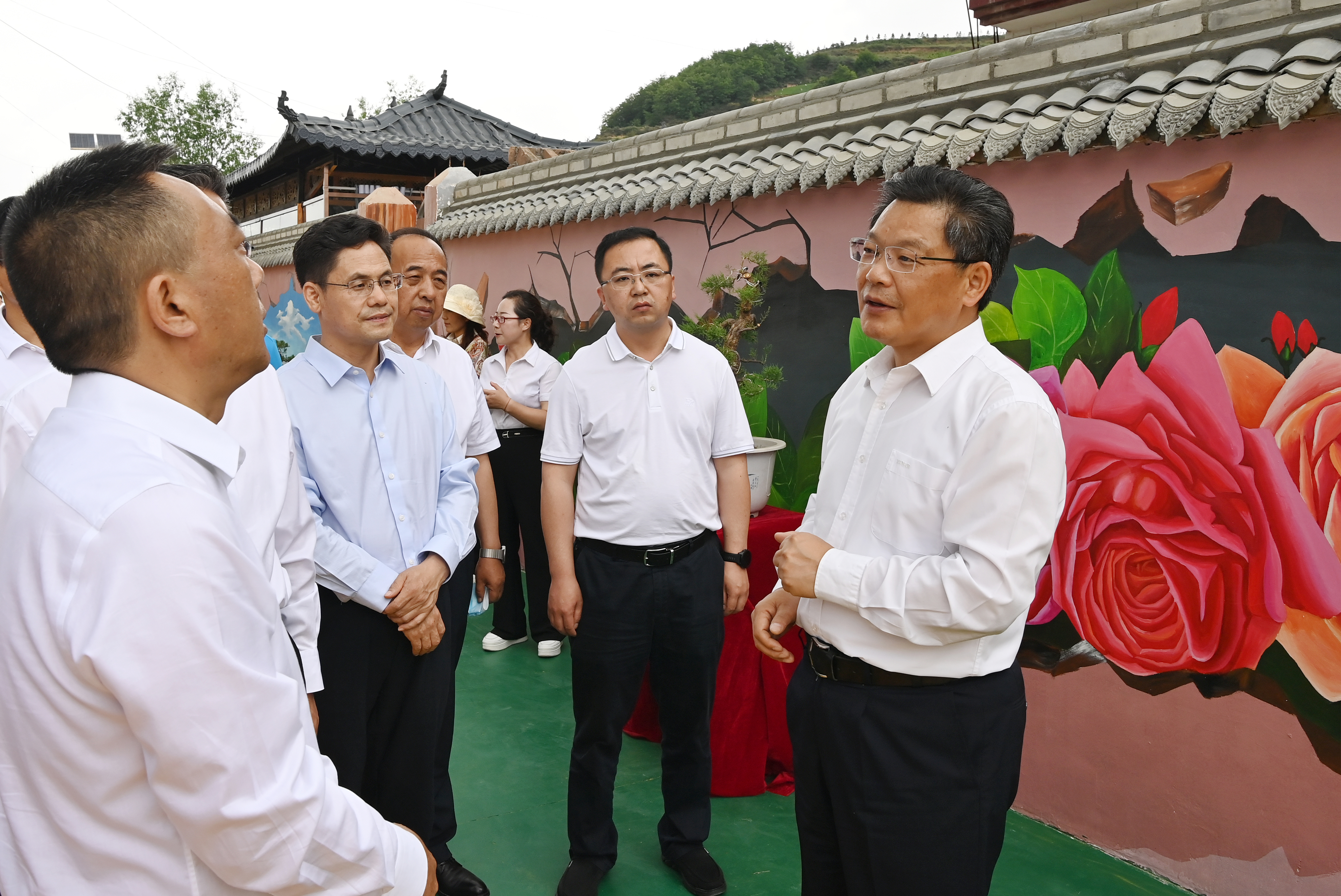 在武山县龙台镇马年村,任振鹤走进村落巷道,实地了解乡村建设工作。他强调,乡村建设是乡村振兴的重要任务,是现代化建设的重要内容。要结合实施生态及地灾搬迁,坚定不移走好乡村规划这步“先手棋”,因村制宜、量体裁衣,合理布局乡村住宅、产业、耕地、道路和公共服务设施,以绣花般的细心、耐心和巧心绣出乡村建设的品色、品位和品质,塑造乡村形态之美、厚植乡村产业之美、赋能乡村生活之美,建设“各美其美、美美与共”的美丽乡村、幸福家园。