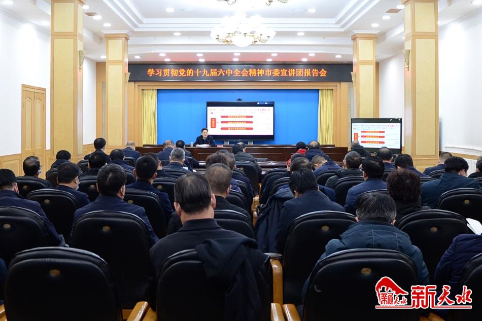 1月5日,天水市委副书记、市长王国先在市政府系统宣讲党的十九届六中全会精神。他强调,全市政府系统要深入学习贯彻党的十九届六中全会精神,全面落实中央和省委、省政府决策部署,按照市第八次党代会确定的目标定位,在党史中汲取智慧和力量,在学习中坚定信仰和信念,在奋进中牢记初心和使命,把全会精神转化为奋进新征程、建功新时代的强大动力,以更加扎实有效的措施抓好政府各项工作,努力谱写建设幸福美好新天水的崭新篇章。