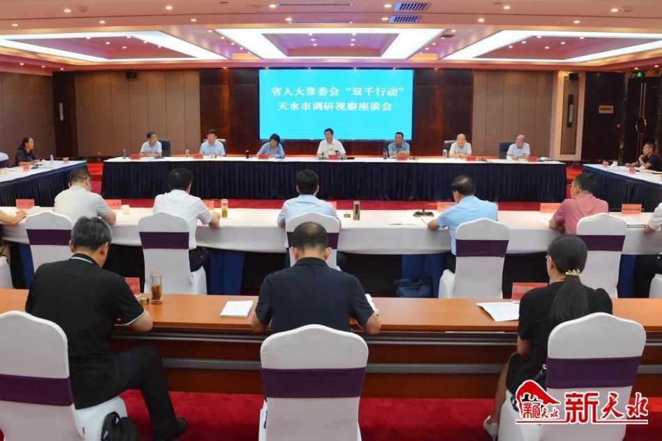 8月14日至15日,省人大常委会党组副书记、副主任胡焯带领调研视察组一行来天水市开展“千名代表调研视察千项工程行动”调研视察活动。省人大常委会副秘书长杜健泽,省人大监察和司法委员会主任委员李忠科,省人大环境资源保护委员会副主任委员、省人大常委会环境资源保护工作委员会主任梁蓉兰,省人大环境资源保护委员会副主任委员彭鸿嘉,市人大常委会党组书记、主任张建杰和部分省人大代表参加调研视察活动。