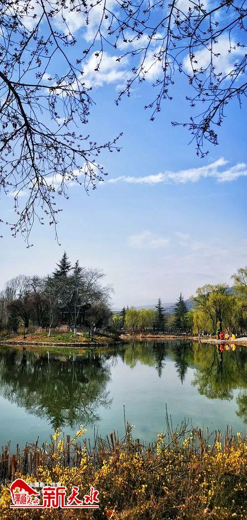 天水麦积区马跑泉公园的花开了,虽不到群芳争艳的时节,但春风一夜后,这满园的花木便迫不及待,照着一湖水的明净,开始描眉梳妆了。