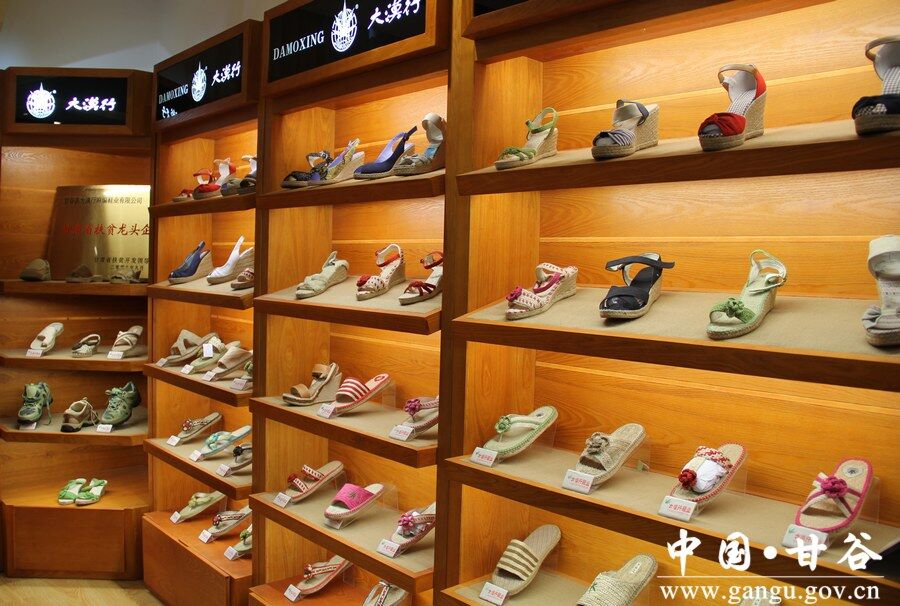 工艺麻鞋由纯麻编织而成。多用麻拧成辫,盘成麻鞋底垫,用麻绳左右穿紧,在底周边栽上较粗的精制麻绳,放成鞋帮子,一一串起来,再做上鼻梁,用木头楦子把鞋鼓起来。细麻鞋底子结实,帮子细密,鼻梁精制,还用白皮包边。除传绣的式样外,还有单边麻鞋与无鼻梁麻鞋等。甘谷麻织业历史悠久,改革开放以来,我县麻鞋业已渐由民户自产转入工厂生产。现在,鞋型多样(包括各式麻拖鞋),质量上乘的“大漠行”牌麻鞋驰名省内外。2015年,甘谷麻鞋“大漠行”喜获中国驰名商标。