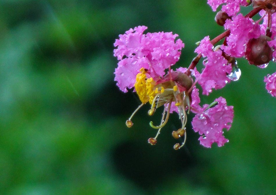 紫薇还具有药物作用,李时珍在《本草纲目》中论述,其皮、木、花有活血通经、止痛、消肿、解毒作用。种子可制农药,有驱杀害虫的功效。叶治白痢、花治产后血崩不止、小儿烂头胎毒,根治痈肿疮毒,可谓浑身是宝。(陈治平)