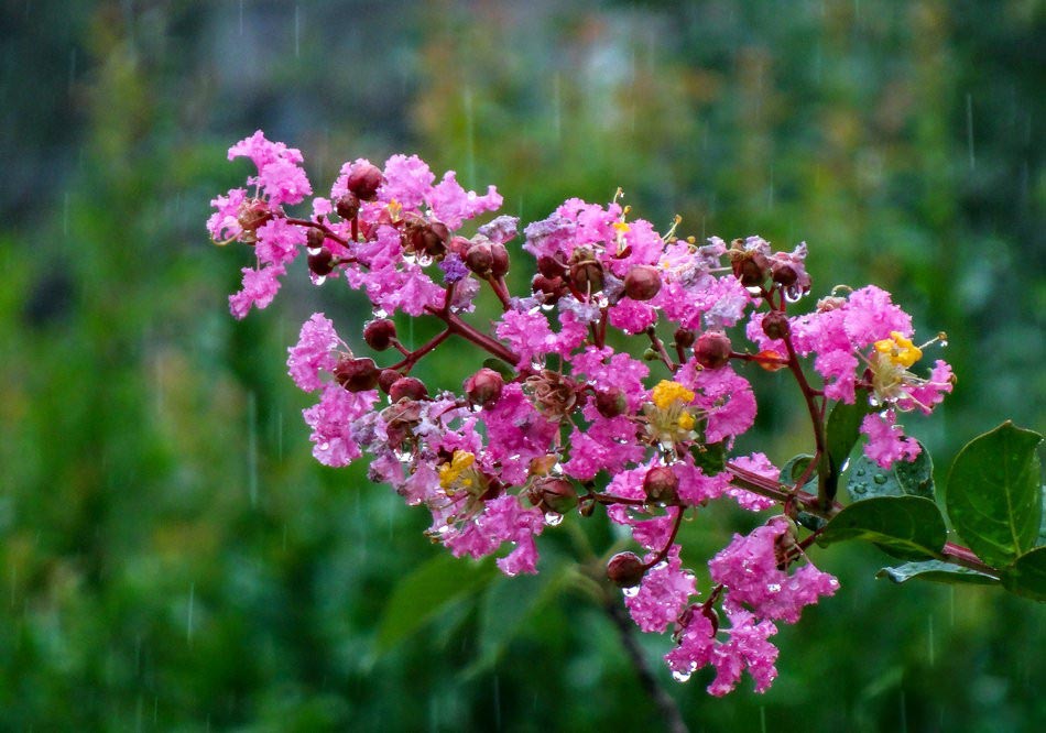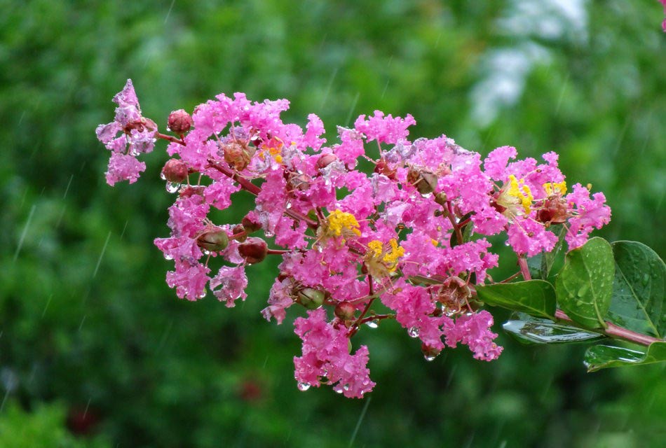 紫薇枝繁叶茂,色艳而穗繁,如火如荼,令人精神振奋。宋代诗人杨万里诗赞颂:“似痴如醉丽还佳,露压风欺分外斜。谁道花无红百日,紫薇长放半年花。” 明代薛蕙也写过:“紫薇花最久,烂熳十旬期,夏日逾秋序,新花续放枝。”