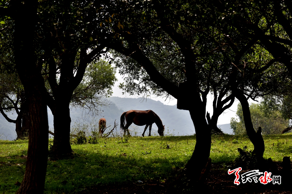 八月中旬,立秋后的天水城区,当太阳丝毫还没有“收敛”炙烤大地的倔强时,在张家川县秦家塬,满目葱郁苍翠的草原牧场上凉风袭面的痛快,着实有种开启“冰箱”模式的感觉。置身于此,让生活在城市里的焦灼烦躁荡然无存。