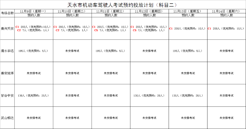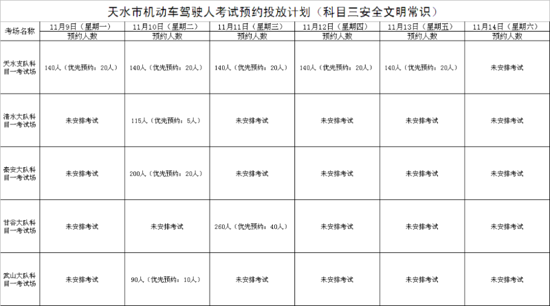 2020年11月9日至11月14日的机动车驾驶人考试计划于今日投放,请考生合理安排自己的时间进行考试。有考试需求的考生请登录公安部交通安全综合服务管理平台(http://gs.122.gov.cn/)或者公安部“交管12123”手机APP进行网上考试预约,考试时请务必携带本人二代身份证。根据甘肃省公安厅交管局对机动车驾驶人考试场进行复验的要求,武山畅达、秦安旭伟社会化考试场已到复验期,需对部分科目进行停考复验,待复验合格后继续投入使用。请广大驾驶人学员关注12123平台考试计划投放情况并按需进行预约。预祝各位考生顺利通过考试。