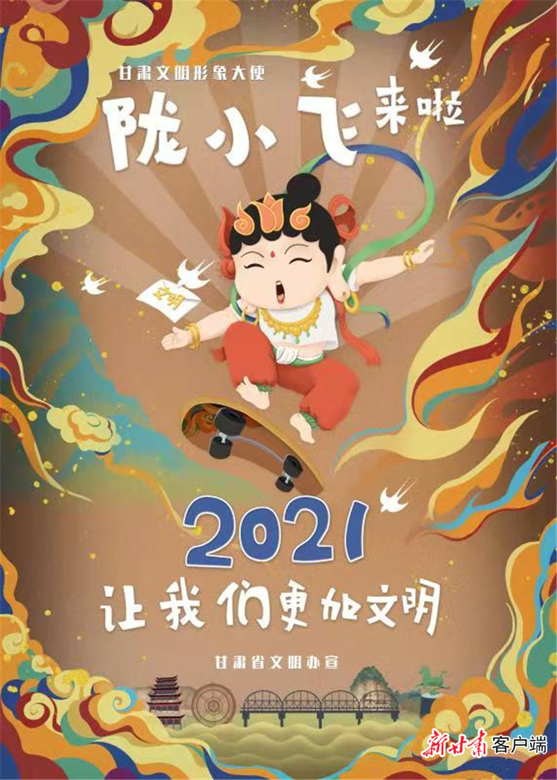此前,以“陇小飞”为主人公倡导的“厉行节约 反对浪费”“文明过大年”等主题的系列公益广告也已亮相。以弘扬文明风尚为主题的“陇小飞”宣传海报、微信表情包、手机彩铃、动漫周边等新媒体和文创产品也将陆续问世。