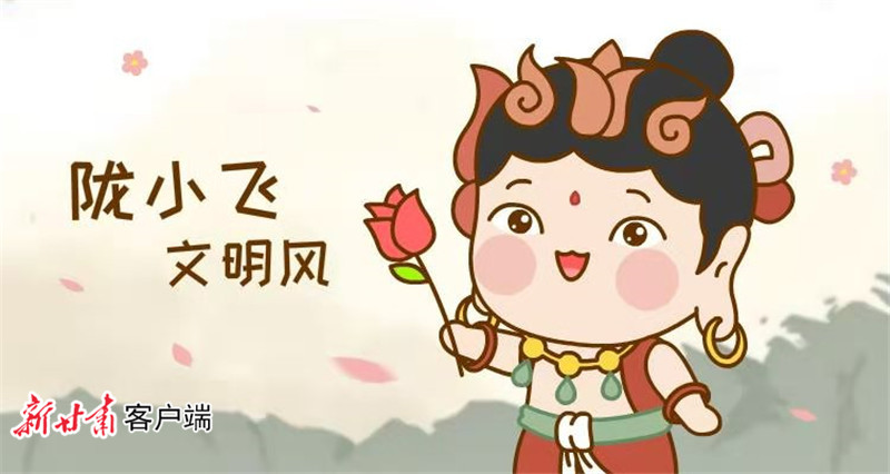 2020年6月诞生的“陇小飞”是一个动漫形象,脱胎于敦煌莫高窟飞天形象。不到一岁的“陇小飞”自担任甘肃文明形象大使以来,活跃在街头巷尾、跳跃在指尖屏幕,走近了千家万户。