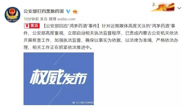 公安部回应“鸿茅药酒”事件