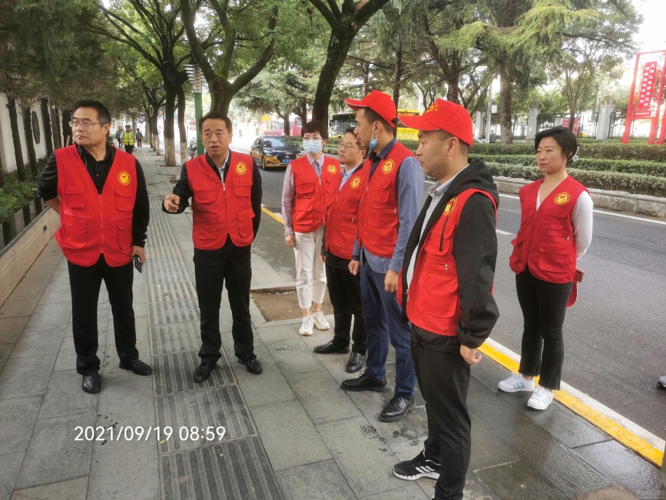 马路办公“带头干”。市商务局大力践行“一线工作法”,建立领导带头整治、步行巡查、问题整改、台账销号等一系列“马路办公”机制。9月19日上午,市商务局党组书记、局长马小龙亲自带队,深入“包街”责任路段,并现场办公提出整治要求,不要仅仅停留在清扫层面,要对绿化带缺苗或有无垃圾杂物、树干和树枝上有无钉钉子和乱挂杂物、电杆和墙面是否有张贴小广告、车辆乱停乱放、道牙石是否有破损或缺失、乱搭乱建等现象立即想办法解决,“地毯式”除脏、治乱、疏堵、纠差,一处一处抓整改,一条一条抓达标,确保工作实效。