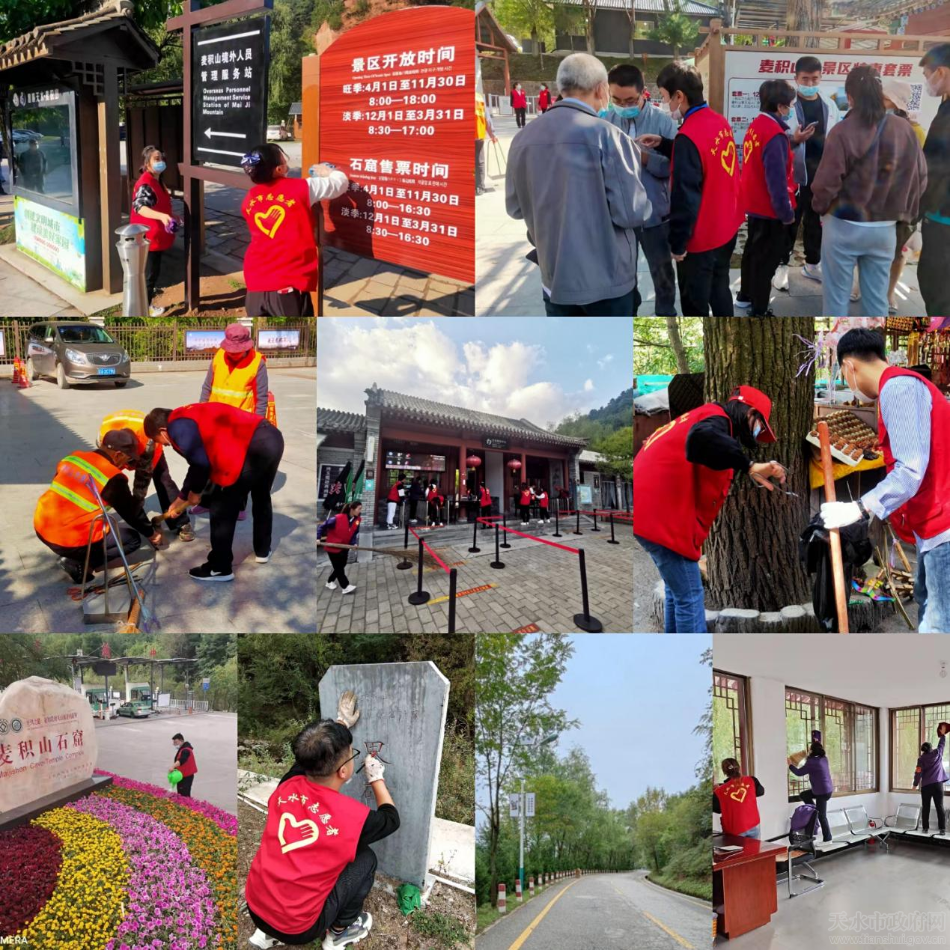 中秋假期,麦积山大景区保障游客良好出行体验的同时,在落实创城责任上再发力,对照标准要求,针对服务设施不健全、公益广告不完善、环境卫生有遗漏等问题,持续开展环境清洁整治行动,全面清理各区域卫生死角,更换维修破损设施,开展创城网格化常态化管理,全体干部职工将创城与党史学习教育相结合、与“党员先锋示范岗”相结合、与“岗位练兵”相结合,全心全力投入全国文明城市创建工作,以高标准、严要求落实创城责任,展现使命担当。