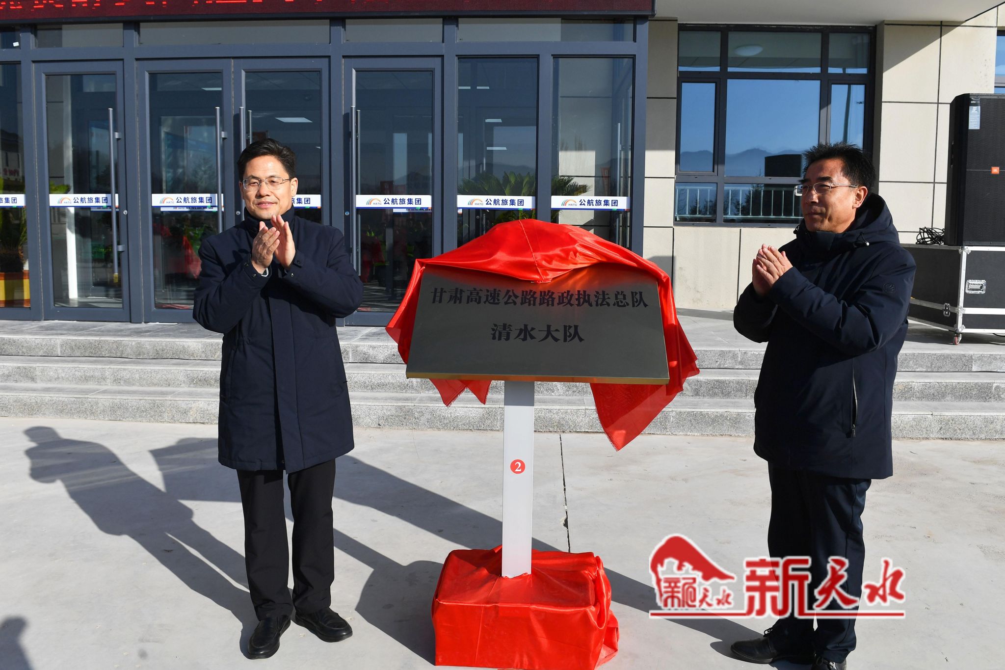 揭牌仪式上,市委书记冯文戈和省公航旅集团党委书记、董事长袁得豪为“静天高速公路清水收费所”揭牌;市委副书记、市长王国先和省交通运输厅副厅长石华雄为“甘肃省高速公路路政执法总队清水大队”揭牌;省民航机场集团党委书记、董事长王贵玉和市委常委、秘书长张庆利为“天水市公安局交警支队红堡高速公路大队”揭牌。