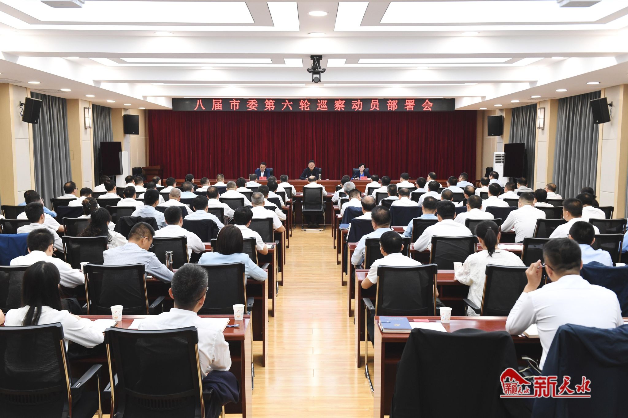 9月20日,八届市委第六轮巡察动员部署会召开。市委书记、市委巡察工作领导小组组长冯文戈出席会议并讲话,市委常委、市纪委书记、市监委主任、市委巡察工作领导小组常务副组长王洋主持会议,市委常委、组织部部长、市委巡察工作领导小组副组长胡志勇宣布巡察组组长授权任职及任务分工决定。
