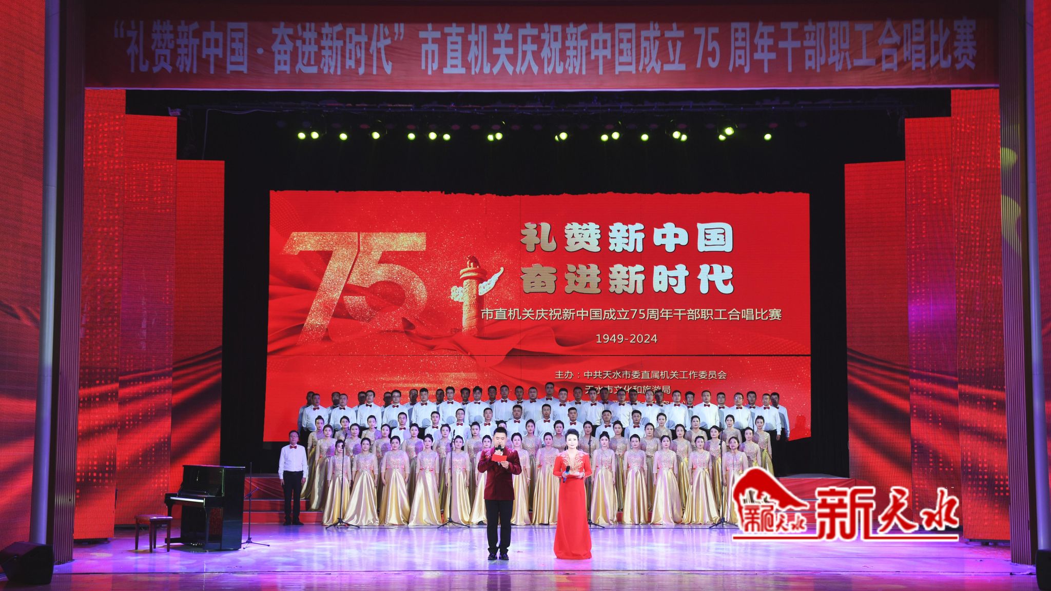 9月24日晚,“礼赞新中国 奋进新时代”市直机关庆祝新中国成立75周年干部职工合唱比赛在秦州剧院举行。