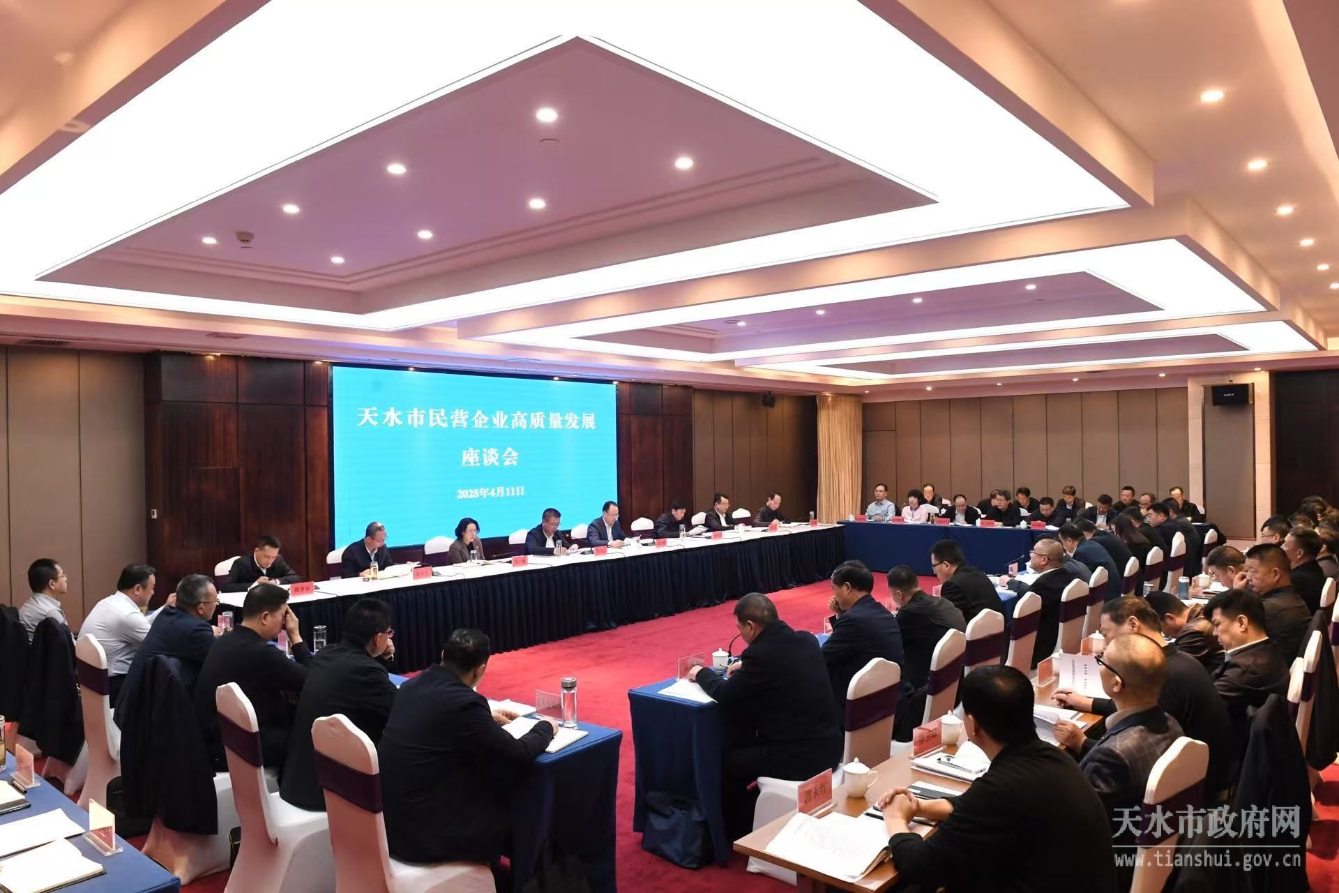 4月11日,天水市民营企业高质量发展座谈会召开。市委副书记、市长刘力江出席会议并讲话,市人大常委会主任贾义翔,市政协主席王燕,副市长董小平、郭庆祥、储著贞,市政府秘书长马军胜出席会议。市委副书记杨晓锋主持会议。