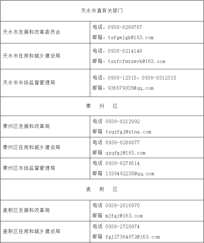 为进一步整顿和规范物业服务市场秩序,加大对物业服务行业的监管力度,市司法局、市发展和改革委员会、市住房和城乡建设局、市市场监督管理局联合在全市部署开展了物业服务市场秩序专项执法监督活动。为广泛征集物业服务企业违法违规问题线索,方便群众参与监督和反映问题,现将天水市受理投诉举报方式予以公布,如您所在小区物业服务企业有违法违规行为,请按照属地管理的原则,向有关部门进行投诉举报。