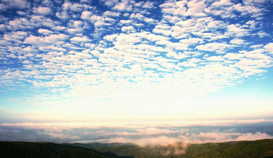 秋天的一场大雨让北关山的清凉更加沁人心脾,令人神清气爽,腾挪跌宕的磅礴云海,呼啸转动的风电塔,让北关山的美变得更加雄浑浩瀚,却又不失秀丽和空灵……