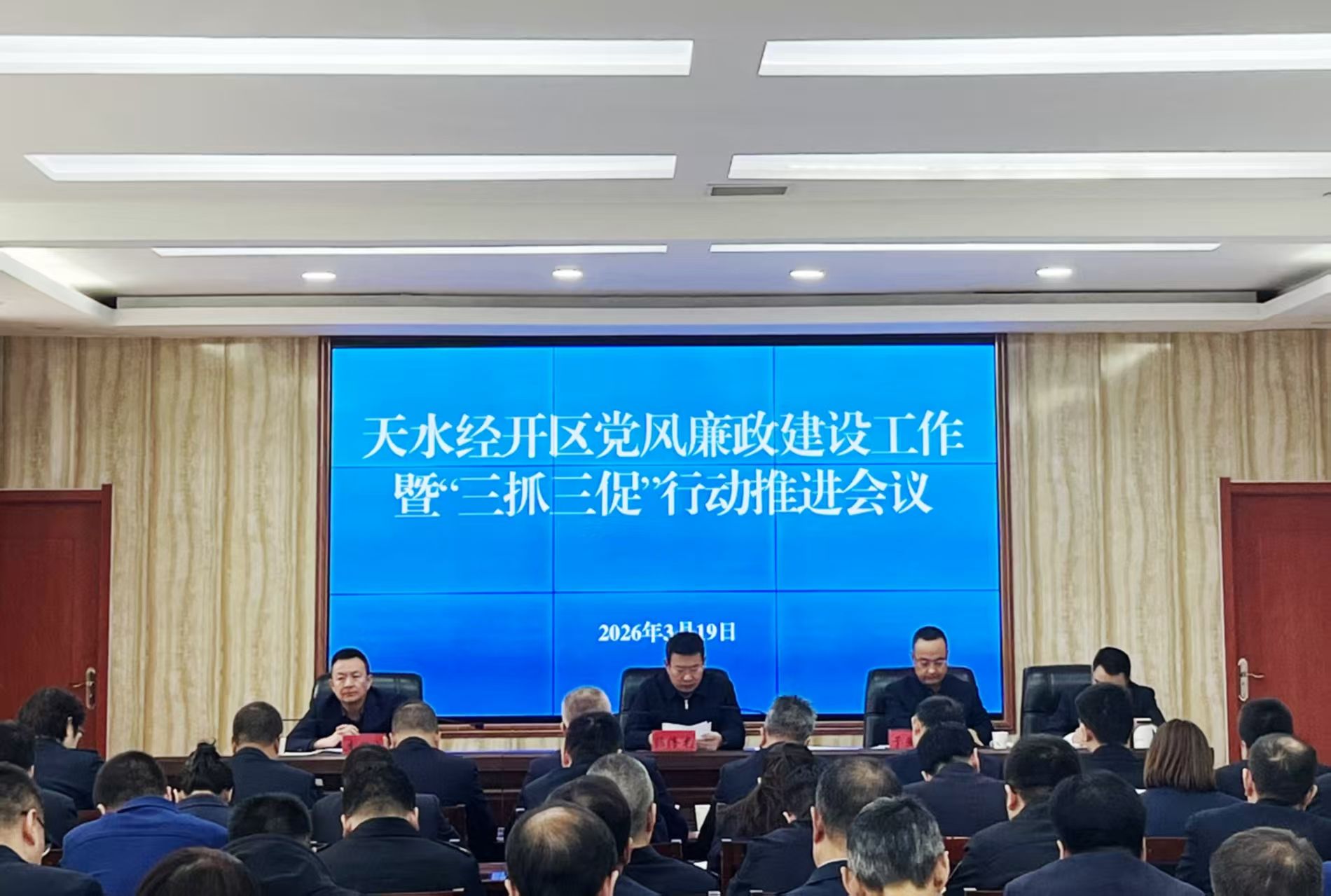 3月19日,天水经开区召开党风廉政建设工作暨“三抓三促”行动推进会议。会议传达学习了二十届中央纪委五次全会、十四届省纪委五次全会、八届市纪委六次全会和省、市“三抓三促”行动推进会议精神,总结了天水经开区2025年的党风廉政建设工作,安排部署了2026年党风廉政建设工作和“三抓三促”行动重点任务。