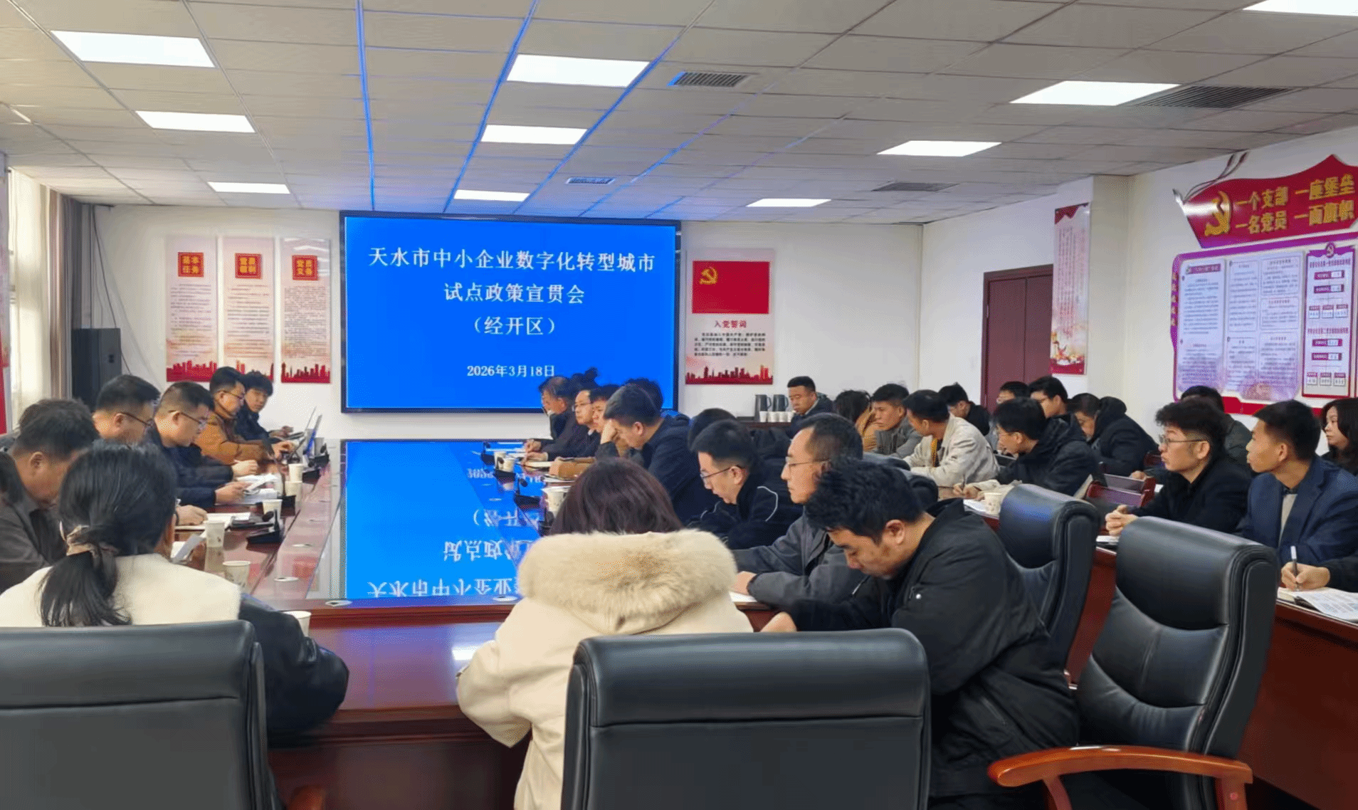 为深入落实全市中小企业数字化转型城市试点工作会议精神,天水经开区于3月18日成功举办中小企业数字化转型政策宣讲会,会议特邀智库机构专家、诊断评测机构专家莅临授课,32家企业代表齐聚参会,精准对接政策要求,切实破解转型难题,为辖区中小企业加快数字化转型步伐筑牢基础。