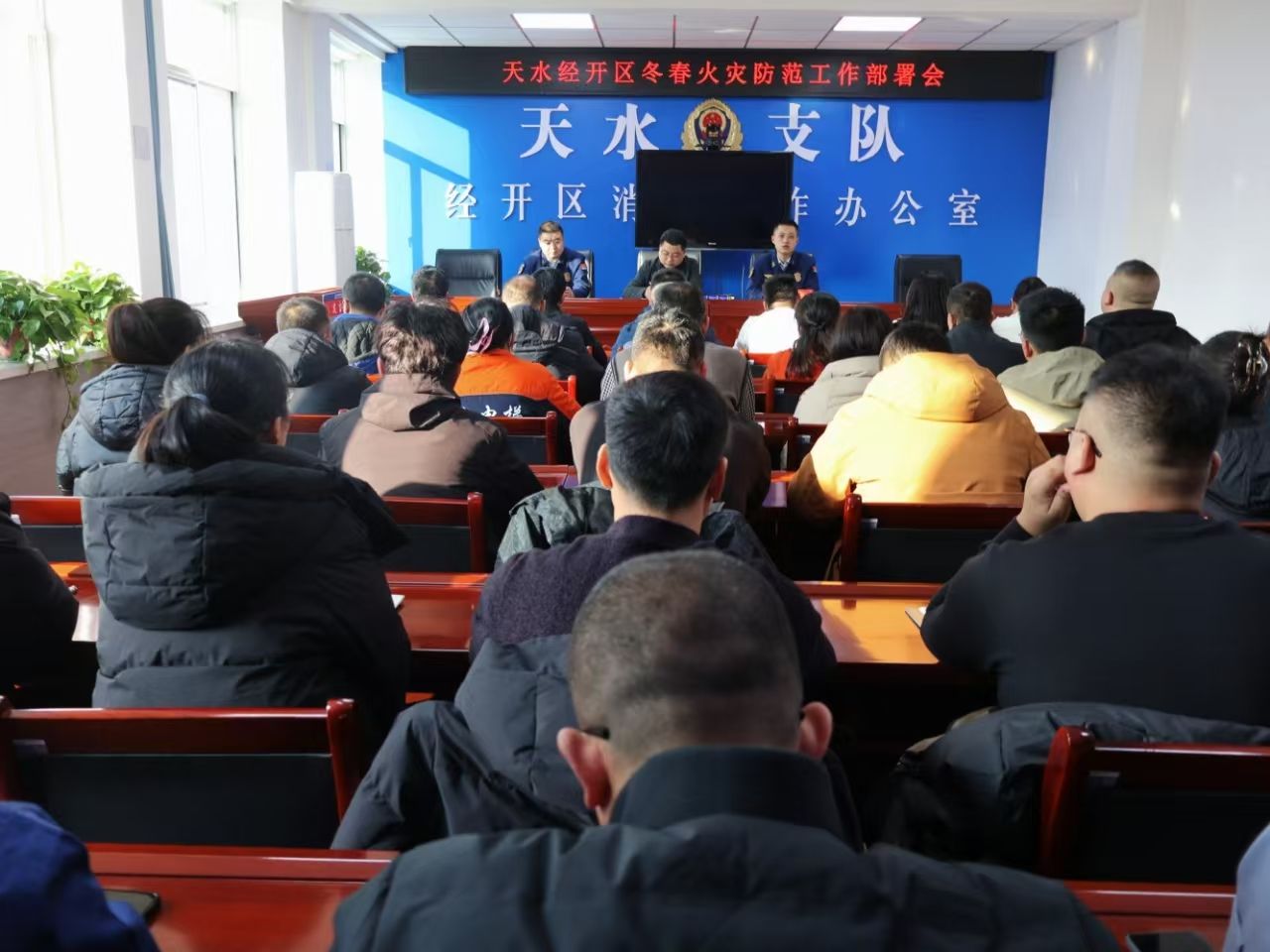 12月20日下午,天水经济技术开发区消防工作办公室组织召开2024年度冬春火灾防控工作部署会。经开区应急管理分局局长马银祥出席会议并讲话,经开区消防安全委员会成员单位主要负责同志及各企业消防安全管理人参加会议。