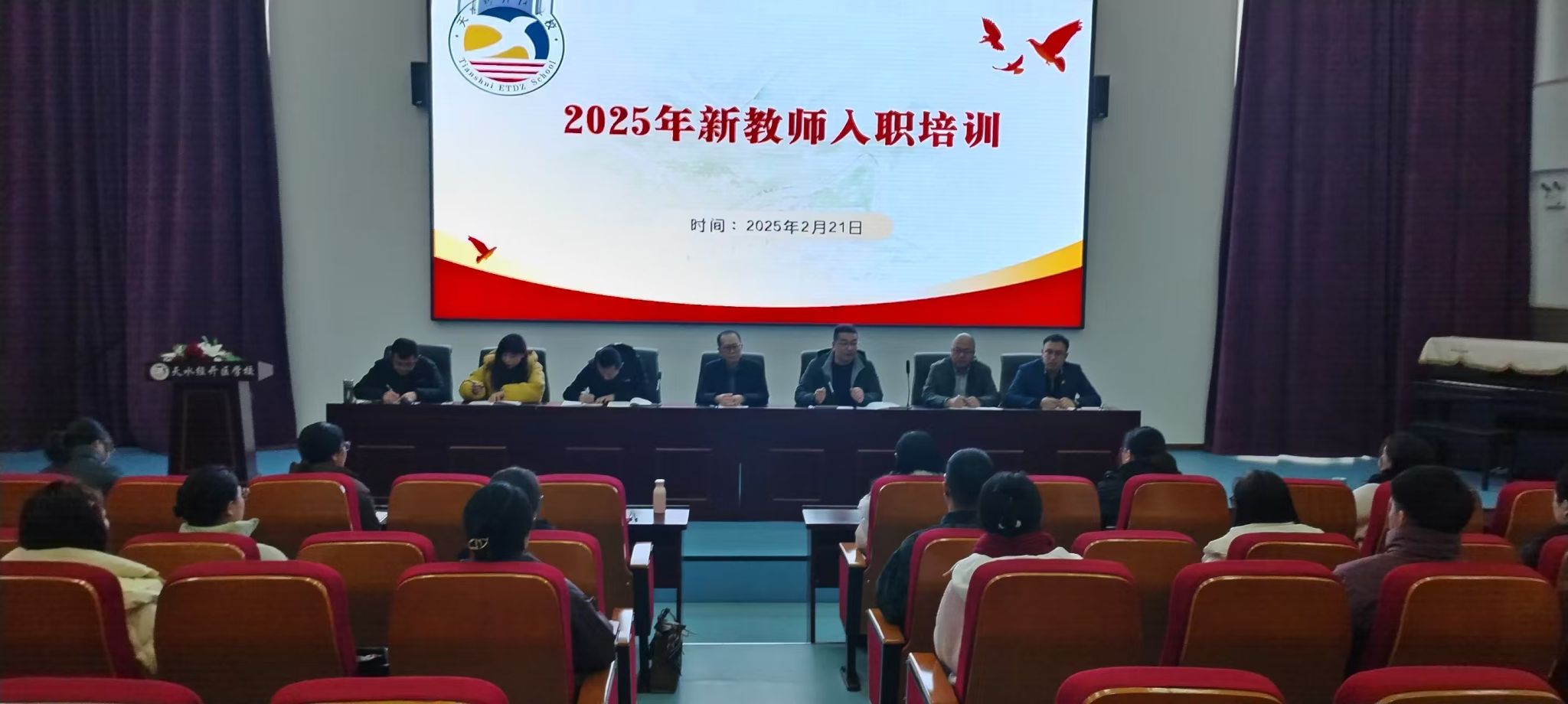在经开区党工委、管委会的大力支持和领导下,经开区学校2025年春季学期17名新教师已全部到岗报道。为帮助新入职教师全面了解学校教育理念和制度要求,践行“教育家精神”的信念追求,提升新教师的师德师风、专业能力,结合上级有关要求,学校于2月21日至22日在阶梯教室举行了新教师入职培训。