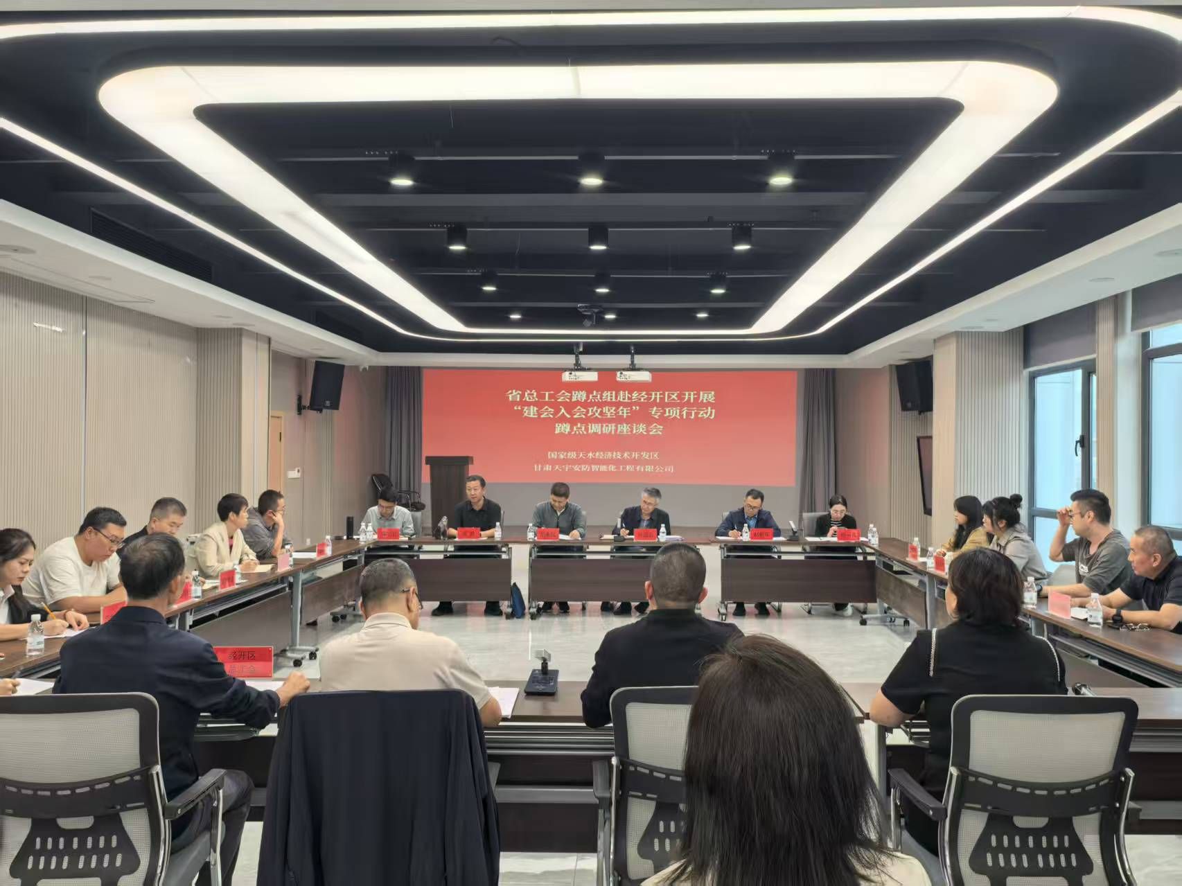 马主席一行首先对天水经开区工人文化宫的建设和运行情况进行了调研,接着现场走访了华威电子拟建会入会筹备情况、天宇安防工会工作开展情况,最后召开了座谈会。经开区党工委副书记、纪检监察工委书记,经开区总工会班子成员、部分基层工会负责人及职工代表共计30余人参加了座谈会。