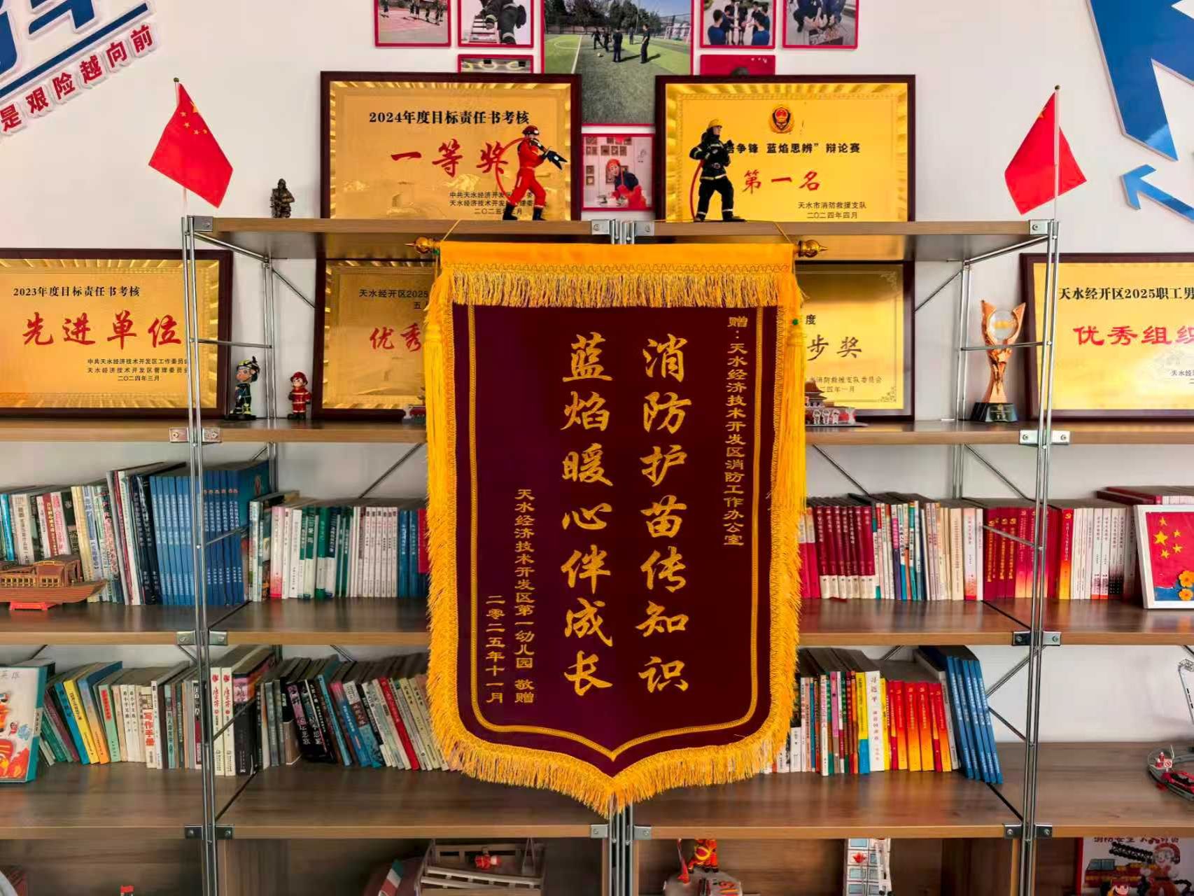 近日,天水经开区第一幼儿园师生代表专程来到经开区消防工作办公室,将一面印着“消防护苗传知识,蓝焰暖心伴成长”的锦旗郑重送到消防员手中,以此感谢此前开展的专业消防培训演练,为孩子们筑牢安全成长防线。